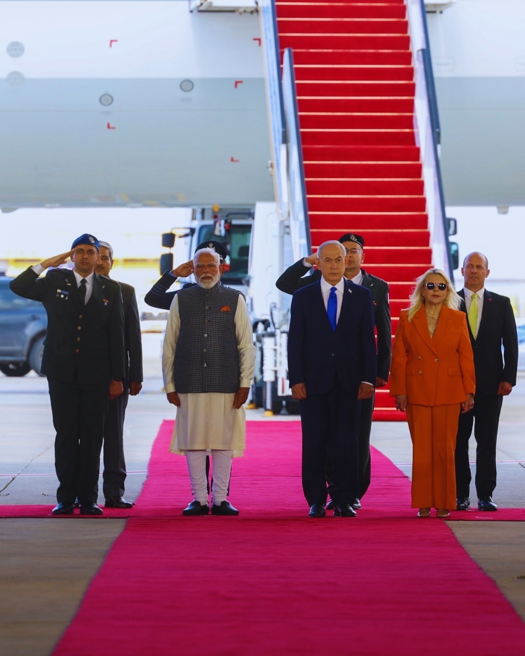 साथ बेंजामिन नेतन्याहू की पत्नी सारा ने गर्म जोशी के साथ पीएम मोदी का स्वागत किया। वहीं पीएम मोदी ने बेंजामिन नेतन्याहू का धन्यवाद जताया। साथ ही एयरपोर्ट पर पीएम मोदी को गार्ड ऑफ़ ऑनर दिया गया।