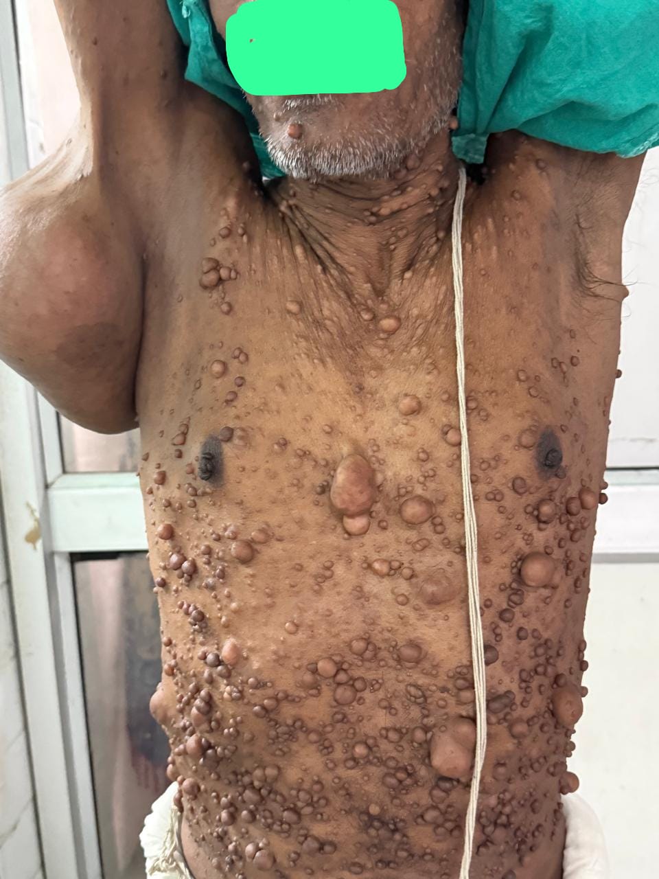 मरीज के शरीर पर लगभग 4 सेंटीमीटर से लेकर 10 इंच तक आकार की विभिन्न गांठें मौजूद थीं। वहीं इनमें से एक गाँठ जिसका आकार लगभग 10 इंच था तथा जिसका वजन लगभग 1.5 किलोग्राम हो गया था। मरीज काफी दिनों से इस समस्या से कराह रहा था। इस विशाल गाँठ का सफलतापूर्वक निष्कासन किया गया। बताते चले कि डॉक्टरों की