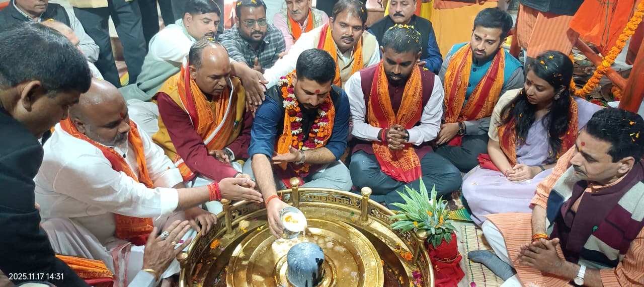 संस्कृत पाठशाला के बच्चों ने पुष्प वर्षा की।प्रवेश द्वार पर दीप समर्पित किया गया। फिर वैदिक मन्त्रों के साथ मधुर लय में वे गर्भगृह पहुंचे, जहाँ आचार्यों ने दुग्ध, पुष्प, अक्षत और गंगाजल से पारंपरिक विधि से पूजा संपन्न कराई। हर-हर महादेव के जयघोष से पूरा क्षेत्र मुखर हो उठा।