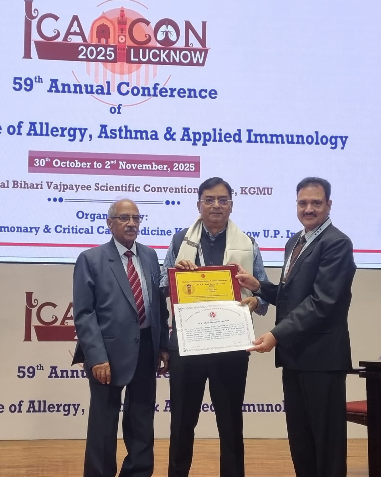 केजीएमयू में इण्डियन कॉलेज ऑफ एलर्जी, अस्थमा एंड एप्लाइड इम्यूनोलॉजी की राष्ट्रीय संगोष्ठी में रेस्पिरेटरी मेडिसिन विभागाध्यक्ष, डॉ सूर्यकान्त ने डा.आरके मोदी मेमोरियल व्याख्यान दिया।