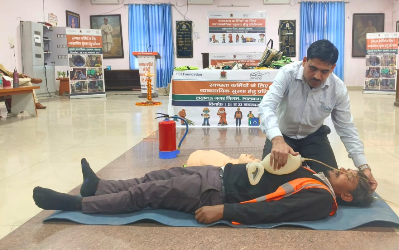 जलकल विभाग व लखनऊ नगर निगम के तत्वावधान में पापुलेशन सर्विसेज इंटरनेशनल इंडिया (पीएसआई इंडिया) और एचसीएल फाउंडेशन के सहयोग से आयोजित व्यावसायिक सुरक्षा पर प्रशिक्षण में