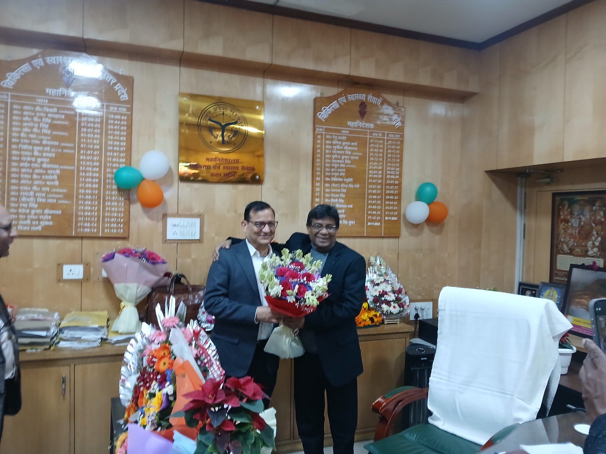 उन्होंने चिकित्सा स्वास्थ्य महानिदेशक उप्र डॉ पवन कुमार अरुण को पुष्प गुच्छ भेंटकर पदभार सँभालने की बधाई दी। साथ ही स्वास्थ्य से जुड़े विषयों पर चर्चा चलती रही।