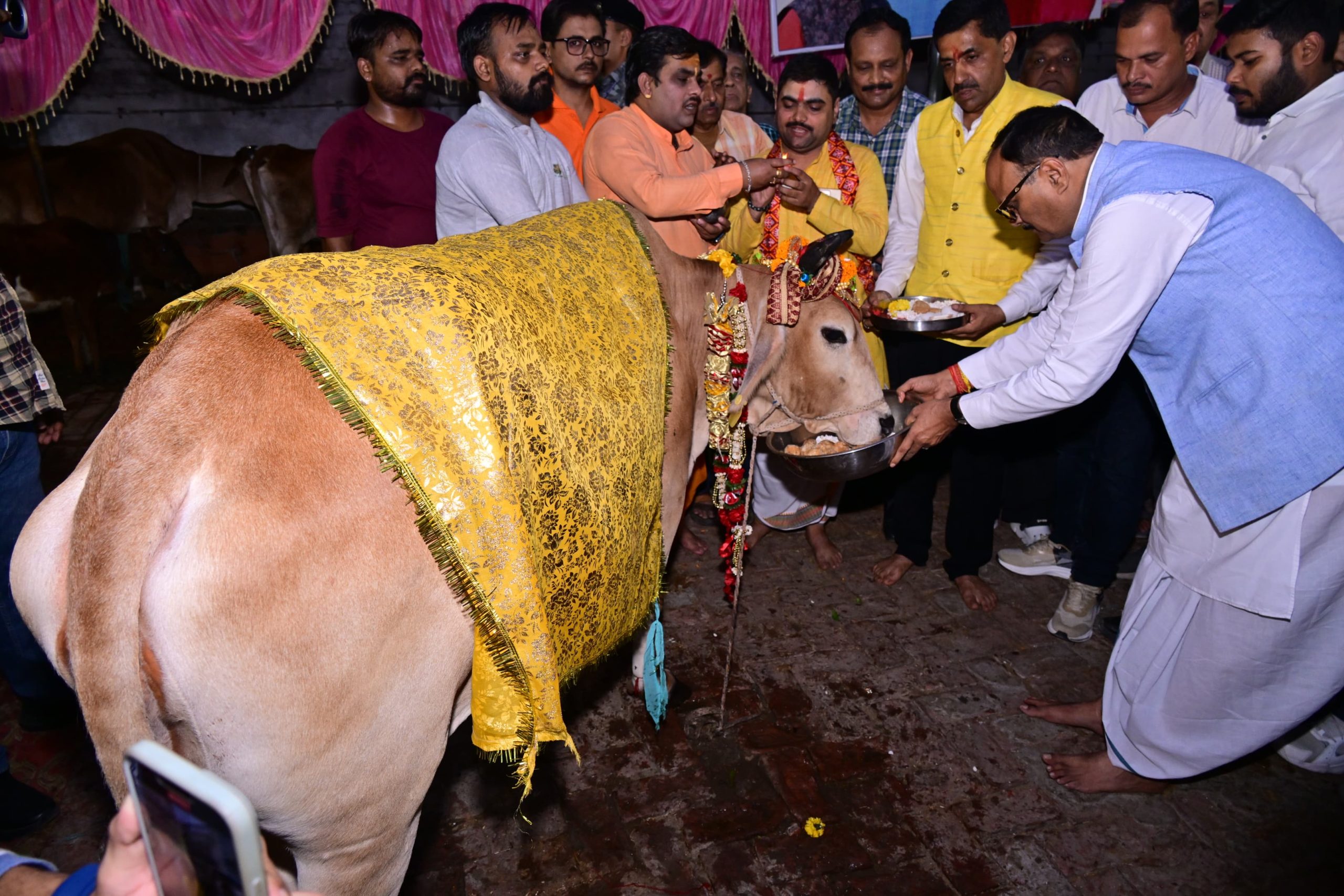 डिप्टी सीएम ने गो माता की पूजा कर खिलाया गुड़