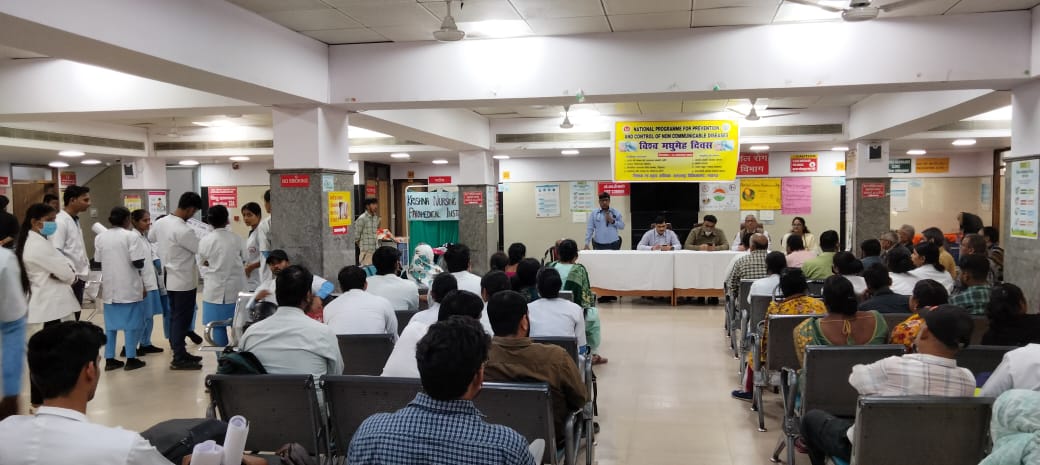 साथ ही ओपीडी परिसर में विशेषज्ञ चिकित्सकों द्वारा गोष्ठी का आयोजन कर मरीजों व तीमारदारों मधुमेह बचाव सम्बंधित जानकारी प्रदान की गयी।