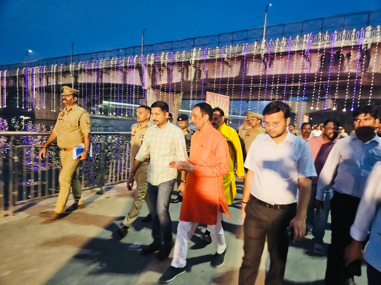 निरीक्षण के दौरान जिलाधिकारी ने घाट पर चल रही तैयारियों का जायजा लिया और संबंधित विभागों के अधिकारियों को आवश्यक दिशा-निर्देश दिए। जिलाधिकारी ने सबसे पहले घाट पर बनाए जा रहे पूजा स्थलों, श्रद्धालुओं के आवागमन मार्ग, सुरक्षा व्यवस्थाओं तथा प्रकाश एवं स्वच्छता की स्थिति का निरीक्षण किया।