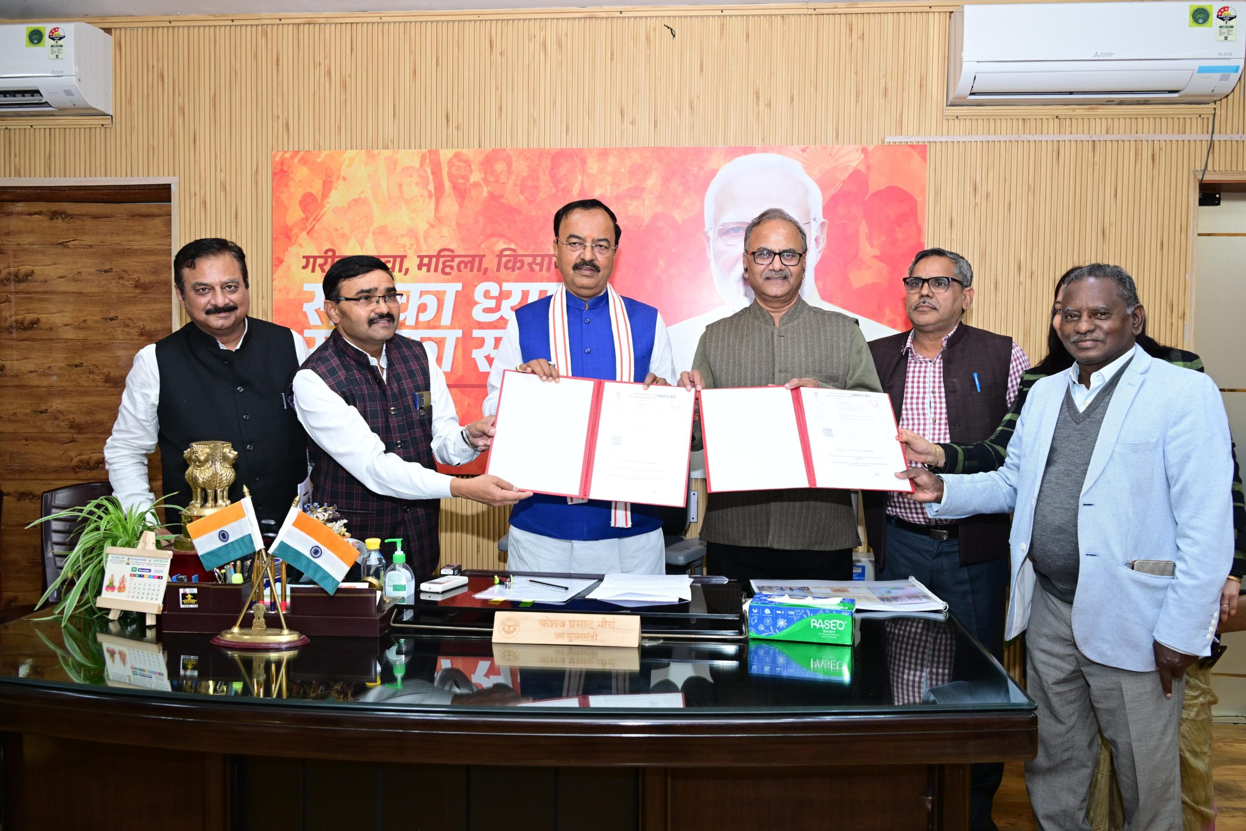 आज उप्र खाद्य प्रसंस्करण उद्योग नीति-2023 अंतर्गत लखनऊ में स्थापित बाबा साहब भीमराव अम्बेडकर विश्वविद्यालय के कुलपति, प्रो राजकुमार मित्तल एवं उप निदेशक, खाद्य प्रसंस्करण विभाग, उप्र के मध्य समझौता ज्ञापन पर उप मुख्यमंत्री उप्र सरकार की उपस्थिति में हस्ताक्षर किया गया।