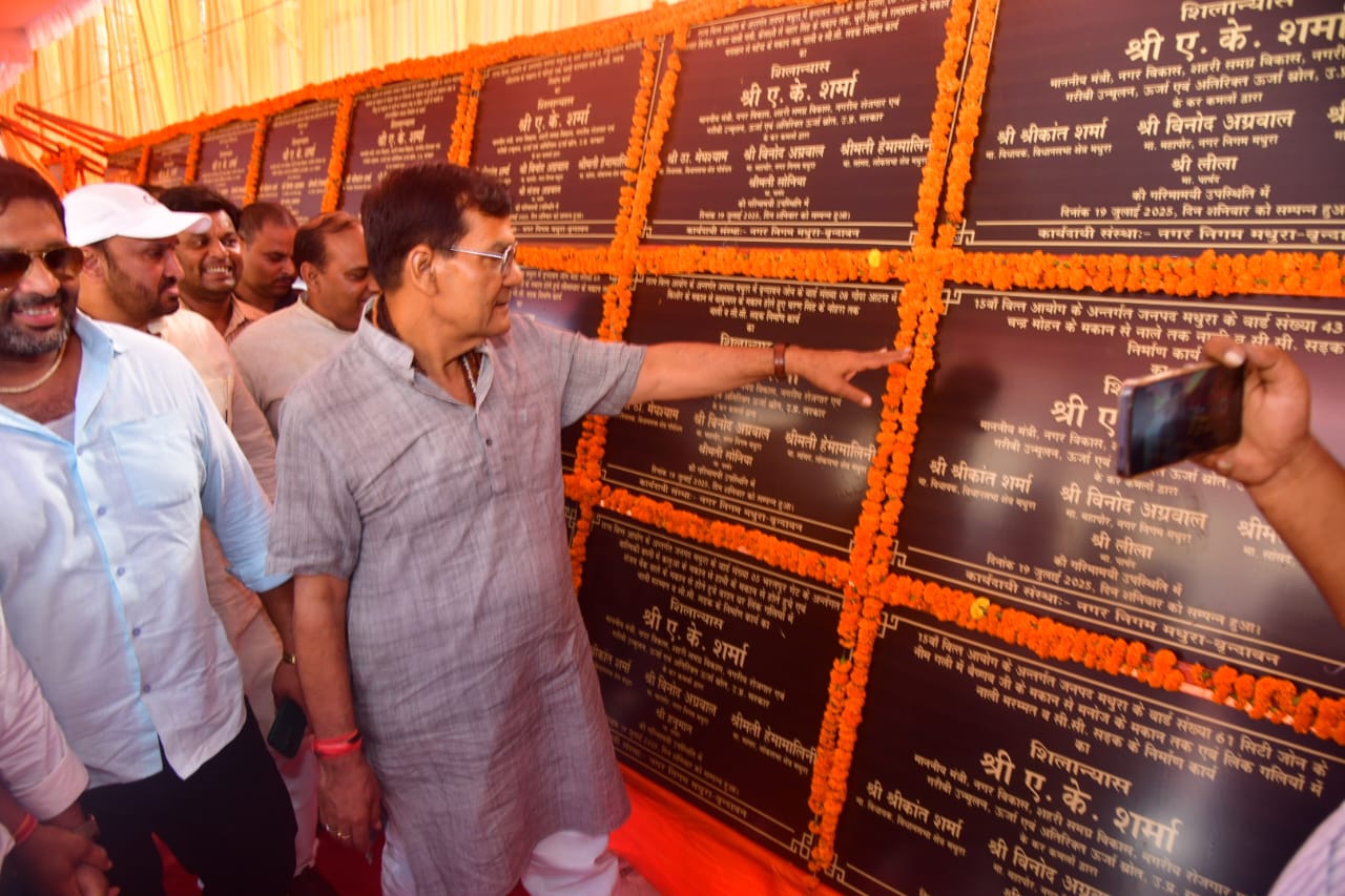 प्रदेश के नगर विकास एवं ऊर्जा मंत्री एके शर्मा ने पाञ्चजन्य ऑडिटोरियम, मथुरा में एक भव्य समारोह में नगर निगम तथा विद्युत विभाग की कुल 194.46 करोड़ ₹ की 1762 परियोजनाओं का लोकार्पण एवं शिलान्यास किया।