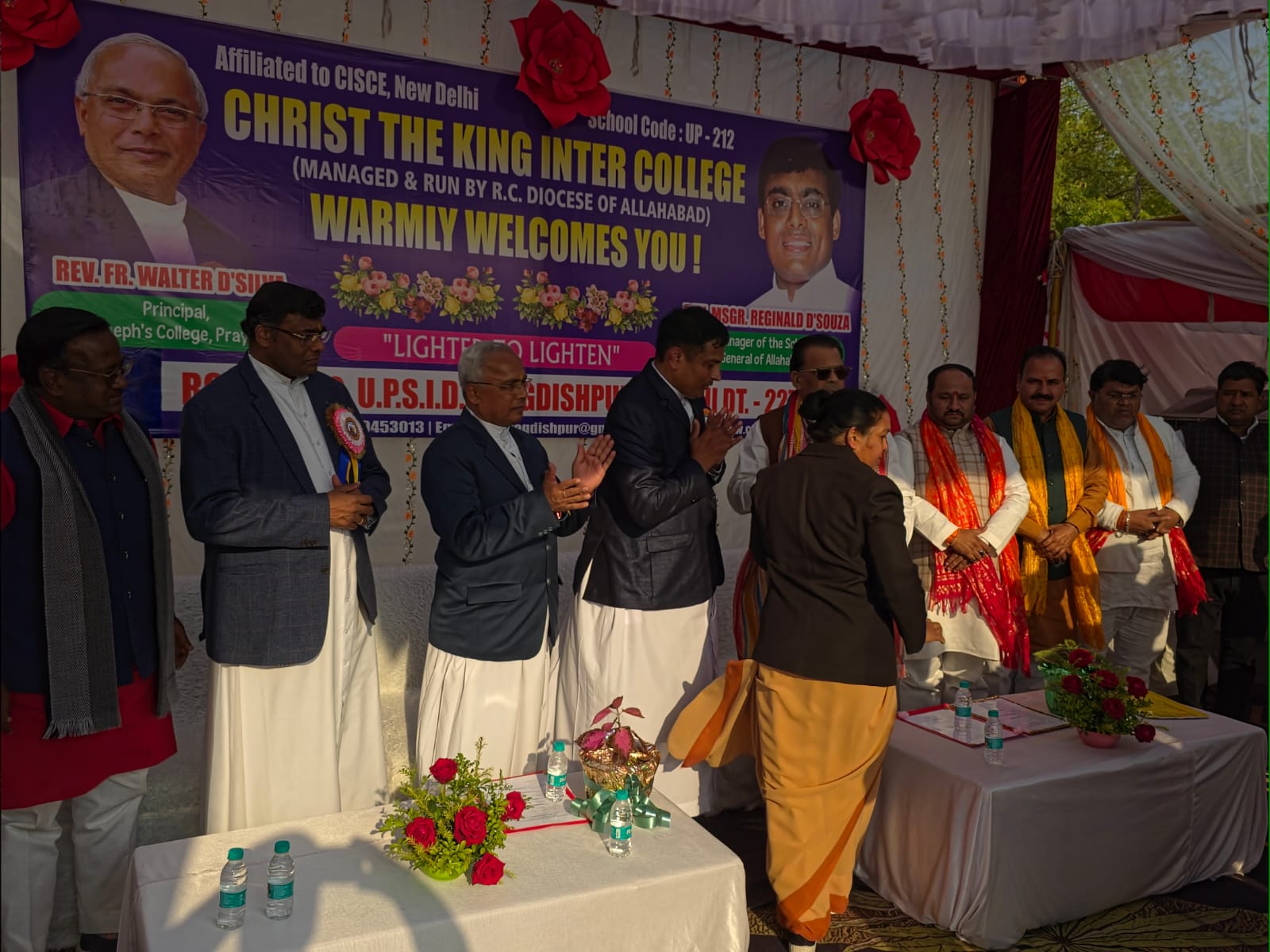विशिष्ट अतिथि के रूप में पधारे रेव. मॉन्सिन्योर रेजिनाल्ड पॉल डी’सूज़ा, प्रबंधक क्राइस्ट द किंग इंटर कॉलेज एवं वाइसर जनरल, धर्मप्रांत इलाहाबाद, ने अपने उद्बोधन में विद्यार्थियों में टीम स्पिरिट, नेतृत्व गुण और चुनौतियों का डटकर सामना करने की क्षमता विकसित करने पर जोर दिया।