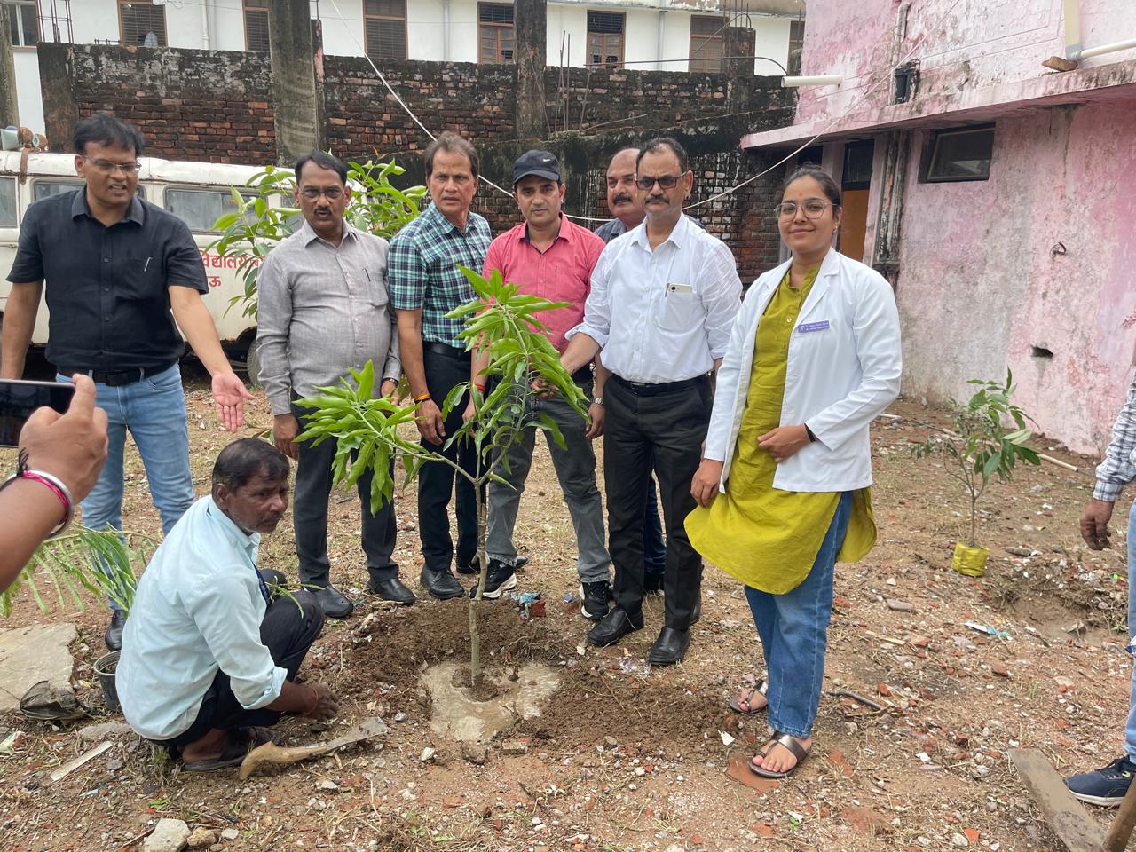 आयुर्वेदिक अस्पताल में एक पेड़ मां के नाम के तहत चला पौधरोपण अभियान