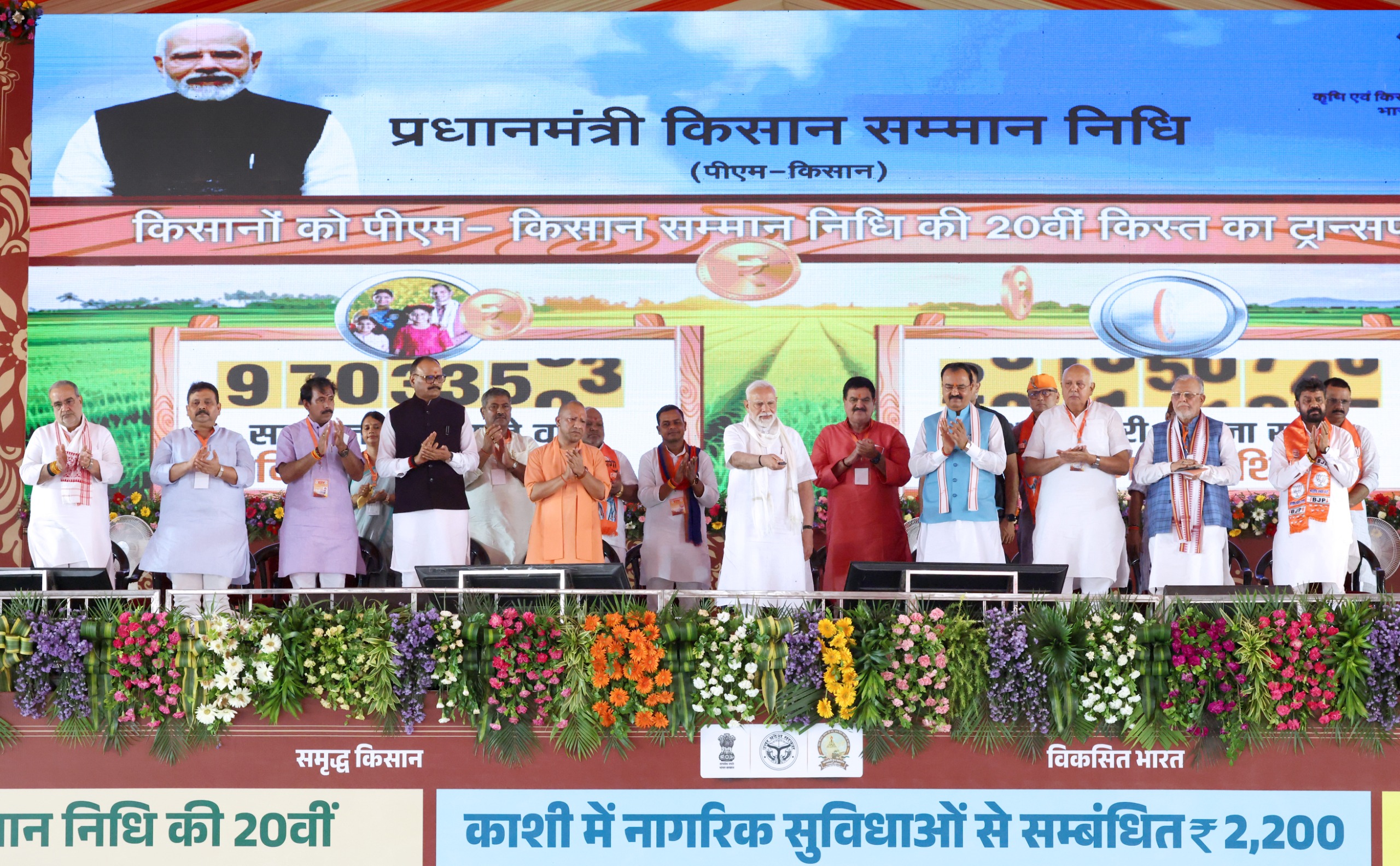 शनिवार को वाराणसी सेवापुरी ब्लॉक के बनौली गांव में आयोजित जनसभा में प्रधानमंत्री ने प्रधानमंत्री किसान सम्मान निधि योजना की 20वीं किस्त के तहत 9.71+ करोड़ किसानों के खातों में 20,500 करोड़ रुपये की राशि बटन दबाकर हस्तांतरित की।