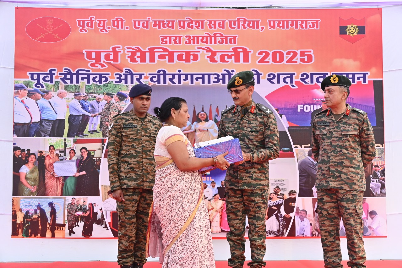 मुख्यालय पूर्वी उप्र एवं मप्र सब एरिया द्वारा प्रयागराज में पूर्व सैनिक (ईएसएम) रैली का आयोजन किया गया। यह रैली प्रयागराज, फतेहपुर, कौशाम्बी, प्रतापगढ़, बांदा एवं चित्रकूट जनपदों के वयोवृद्ध सैनिकों एवं वीर नारियों के कल्याण से संबंधित आवश्यकताओं को संबोधित करने के उद्देश्य से आयोजित की गई थी।