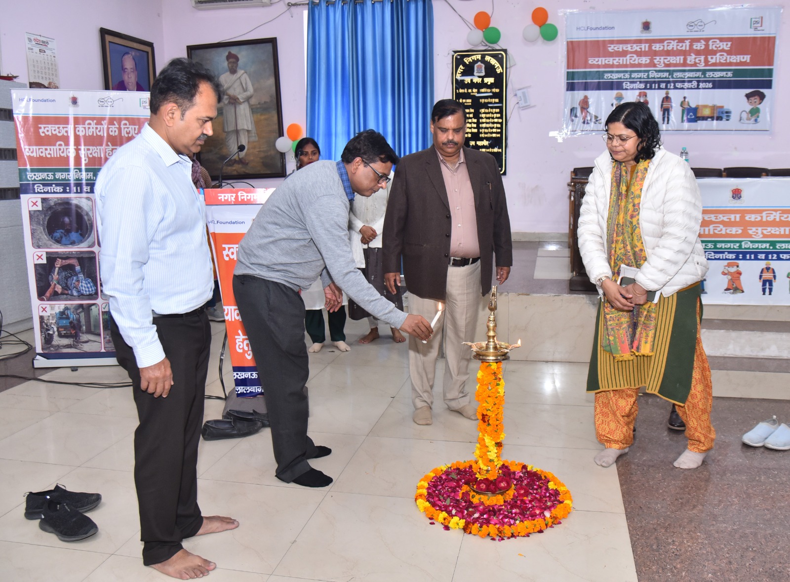 गुरुवार को जलकल विभाग व लखनऊ नगर निगम के तत्वावधान में पापुलेशन सर्विसेज इंटरनेशनल इंडिया (पीएसआई इंडिया) और एचसीएल फाउंडेशन के सहयोग से आयोजित व्यावसायिक सुरक्षा पर प्रशिक्षण में 100 सफाई कर्मचारियों को सुरक्षित कार्य पद्धतियों,