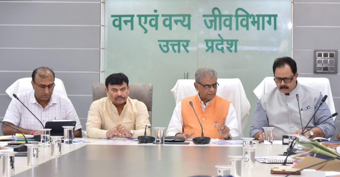 समीक्षा बैठक में प्रमुख सचिव, पर्यावरण वन एवं जलवायु परिवर्तन विभाग, उत्तर प्रदेश शासन अनिल कुमार, प्रधान मुख्य वन संरक्षक और विभागाध्यक्ष, उत्तर प्रदेश, सुनील चौधरी, प्रधान मुख्य वन संरक्षक, वन्यजीव, उत्तर प्रदेश, अनुराधा वैमुरी, प्रधान मुख्य वन संरक्षक, प्रशिक्षण एवं अनुसंधान, उत्तर प्रदेश, एके सिंह, प्रधान मुख्य वन संरक्षक, अनुश्रवण एवं कार्ययोजना,
