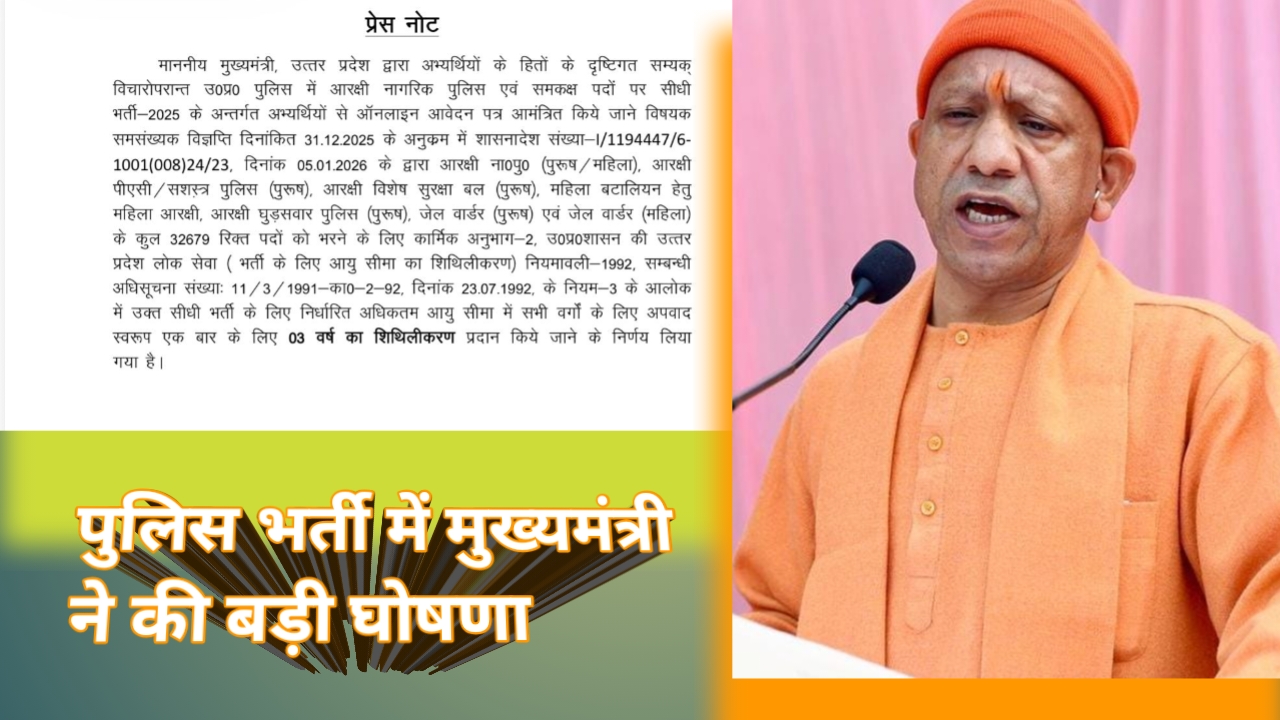 लखनऊ, भारत प्रकाश न्यूज़। योगी सरकार ने युवाओं के भविष्य को देखते हुए बड़ी घोषणा की है। उत्तर प्रदेश में पुलिस भर्ती की तैयारी कर रहे लाखों युवाओं को योगी आदित्यनाथ सरकार ने बड़ी राहत दे दी है।